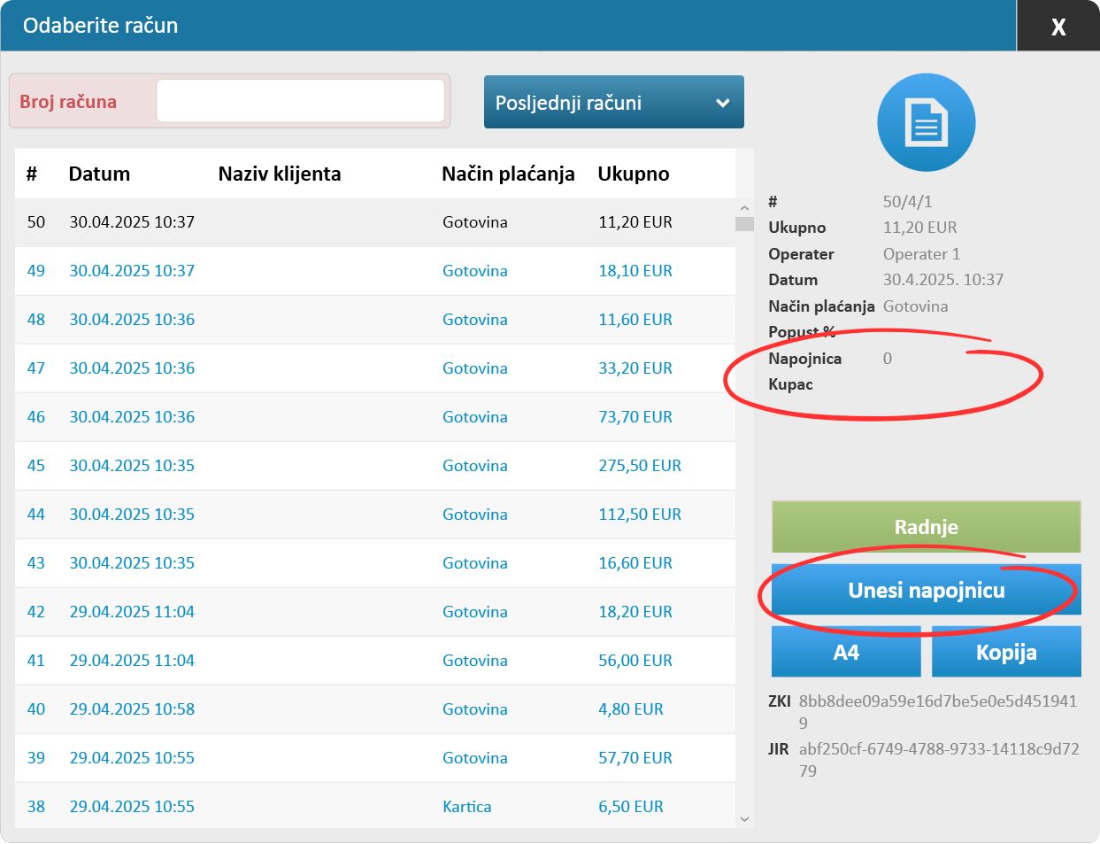 - Račun mora biti fiskaliziran. Bez toga, nema napojnice u sustavu.