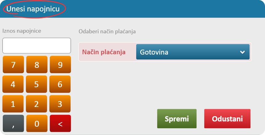 Blagajna mora znati prepoznati i razlikovati napojnicu plaćenu gotovinom ili karticom jer se obje evidentiraju, ali imaju različite računovodstvene postupke.