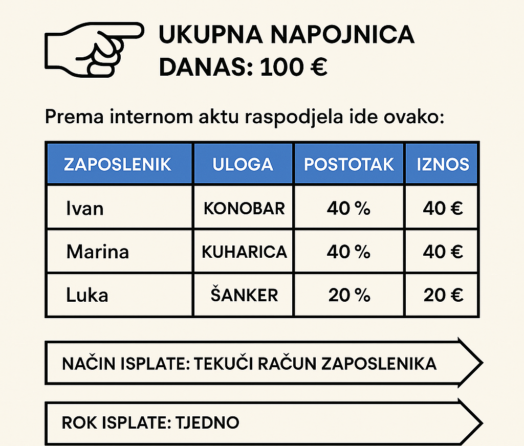 Bez internog akta, zakonski pravilno poslovanje s napojnicama nije moguće.