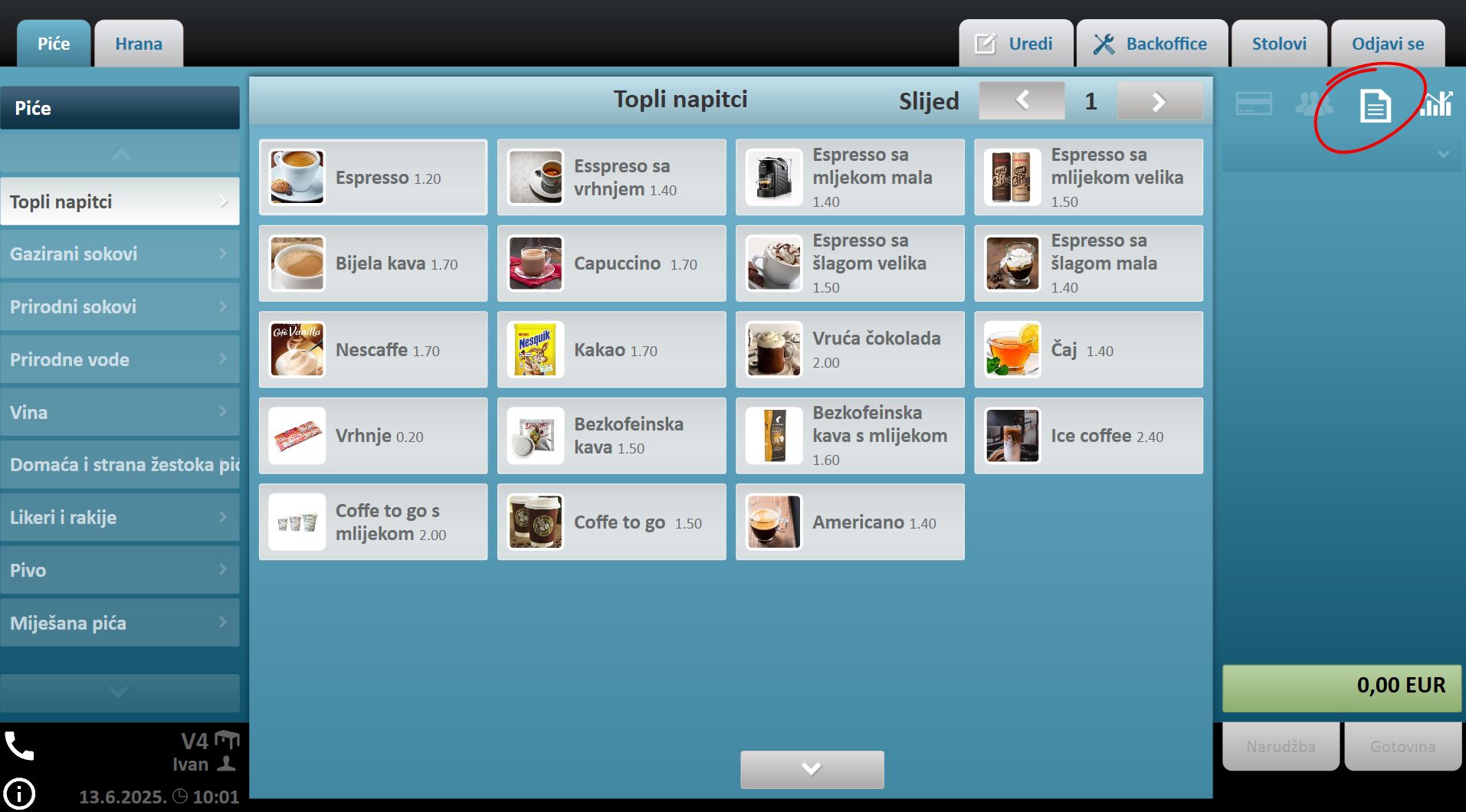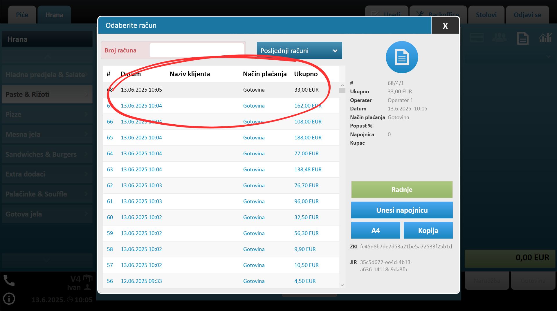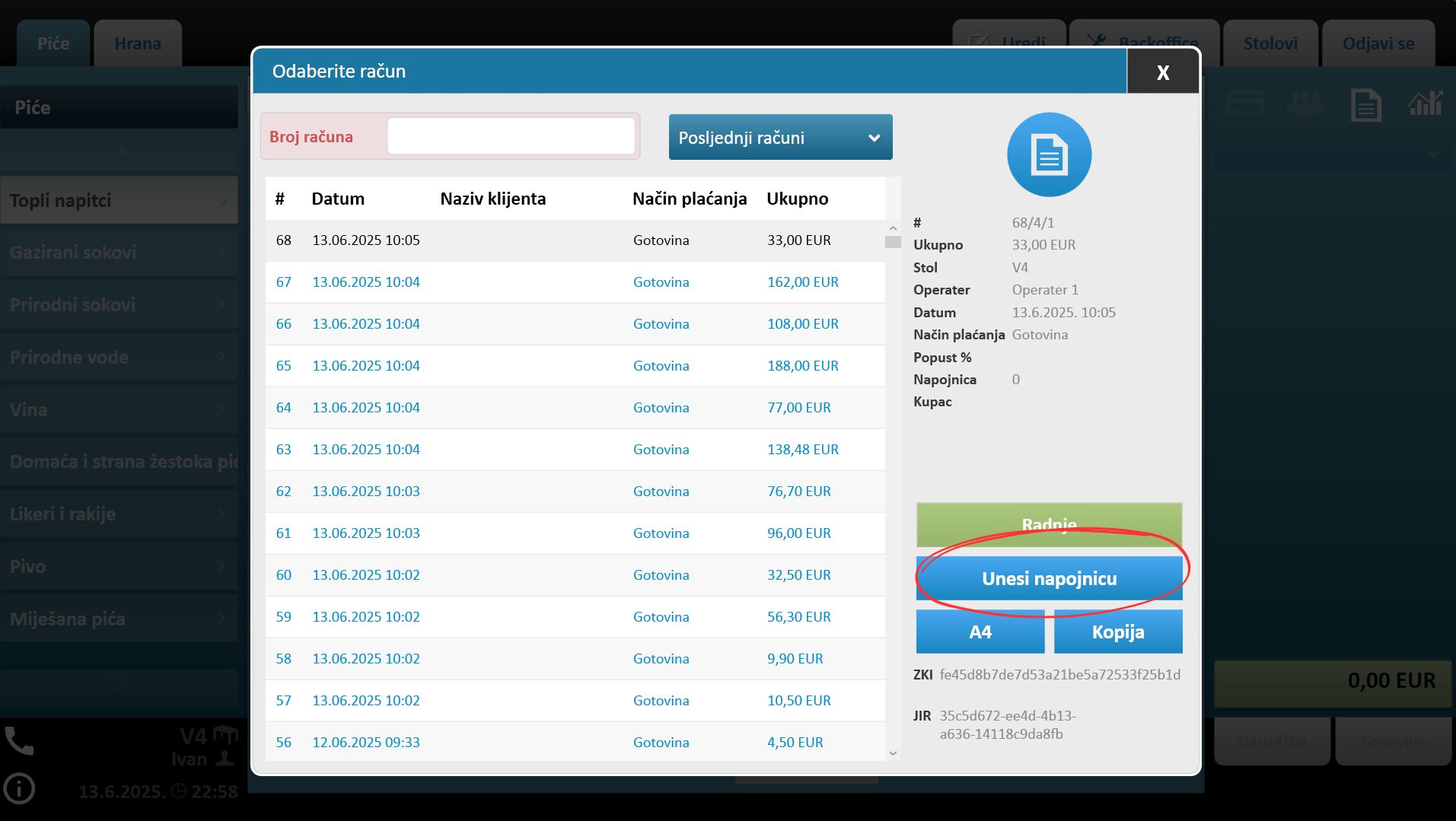 Preduvjet za dodavanje napojnice na račun je napravljen i fiskaliziran račun na koji želiš dodati napojnicu.